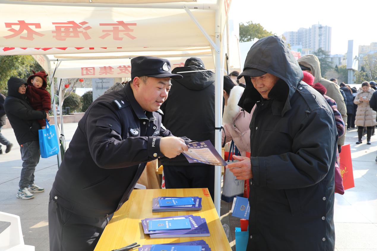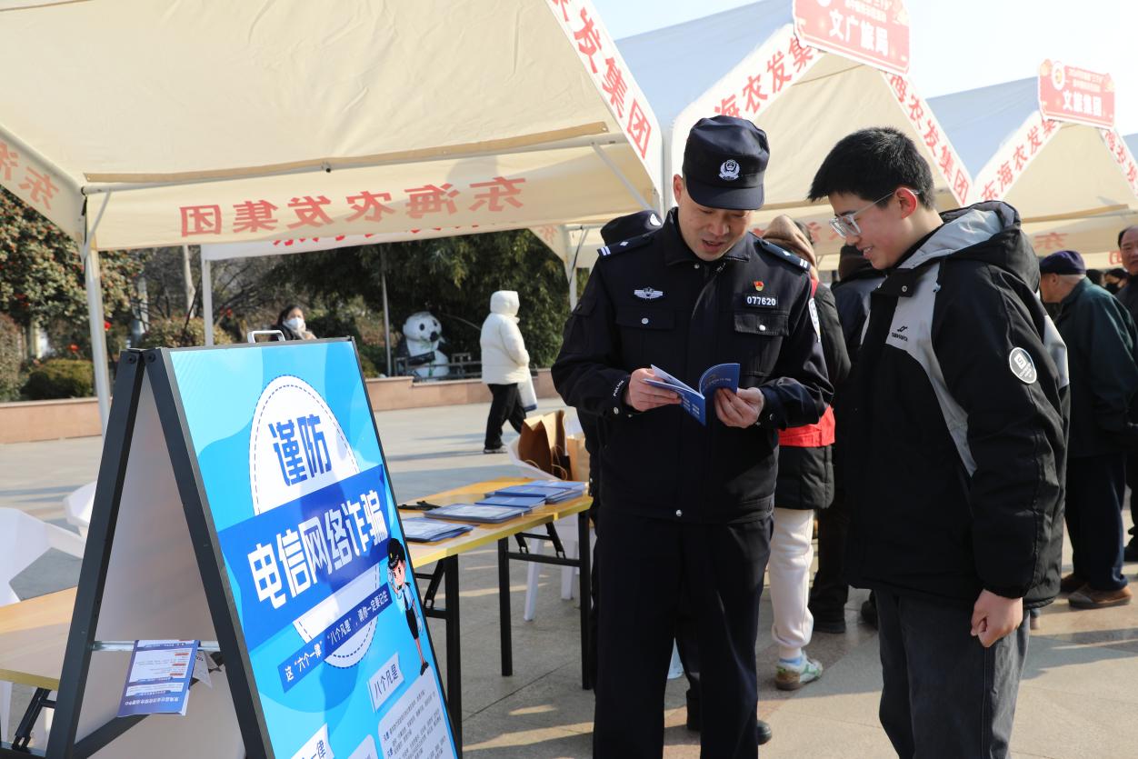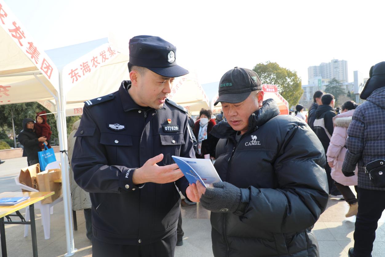 中国江苏网2月11日连云港讯 春节将至,年味渐浓。2月7日上午,东海县人民广场人头攒动,热闹非凡,全县“三下乡”“三进城”集中示范活动在此热烈举行。东海县公安局反诈中心紧抓这一群众聚集的有利时机,积极组织民警走进活动现场,开展了一场形式多样、内容丰富的反诈宣传活动,旨在提升广大市民的防骗意识和能力,全力守护人民群众的“钱袋子”,为欢度新春佳节营造安全稳定的社会环境。