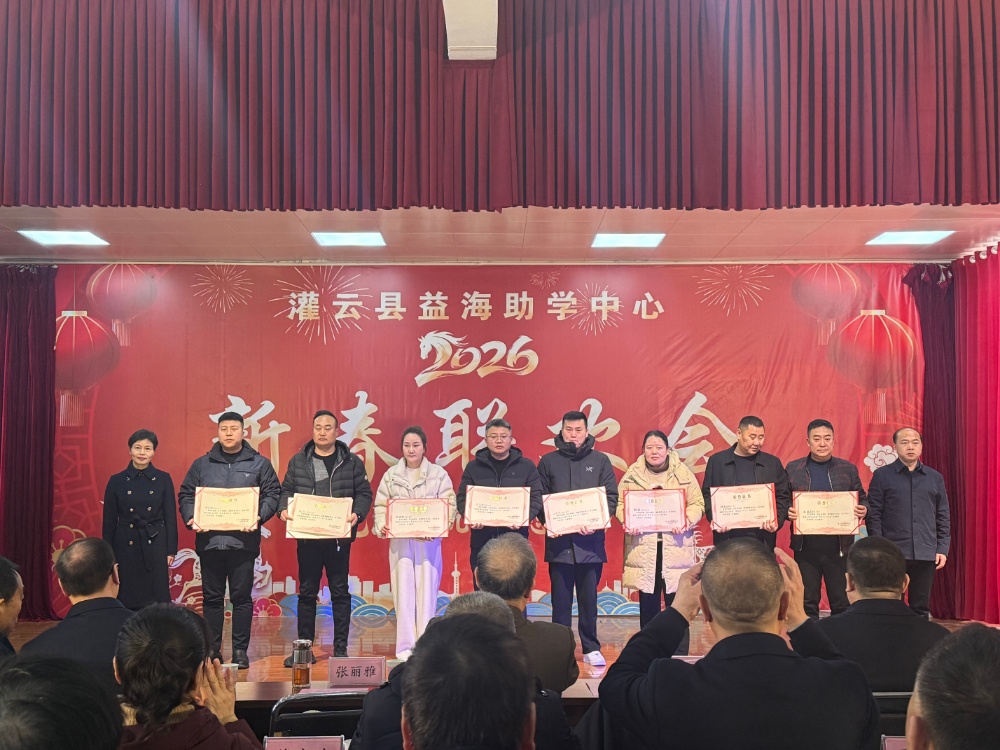 中国江苏网2月13日连云港讯 2月10日,民建连云港市委会主委张丽雅、企业委员会主任尹宝敏受邀出席灌云县益海助学中心2026年新春联欢会,与师生们共迎新春、同享欢乐。灌云县委常委李勇,金龙鱼慈善公益基金会名誉理事长孙立家,灌云县教育局、民政局等领导及相关企业家参加活动。