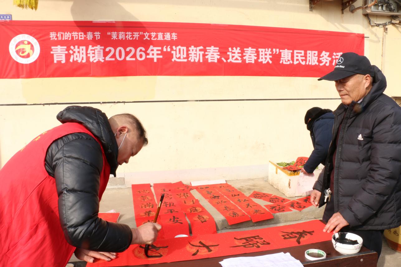 中国江苏网2月13日连云港讯 在2026年新春佳节即将到来之际,为营造欢乐祥和、文明健康的节日氛围,东海县青湖镇围绕“我们的节日·春节”“茉莉花开”文艺直通车等主题,精心组织开展网红打卡“年货大集”、为群众义务写春联、“百姓村晚”演出等形式多样、内容丰富、独具特色的文化惠民活动,把新春祝福、文化服务送到群众的“家门口”,让群众沉浸式感受淳朴的乡土温情和浓郁的乡村年味,乐享新春的“文化大餐”。