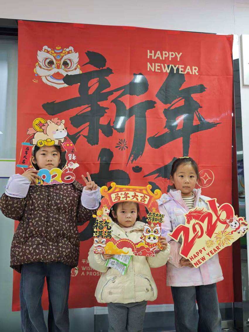 定格美好·拍照打卡区留住“新春全家福”。大厅春节背景板前,红灯笼、中国结映衬着张张笑脸。“马年大吉”“平安喜乐”等手持牌被孩子们争相举起,社区工作人员化身“摄影师”,蹲下身、找角度,为大家抓拍温馨瞬间。镜头里,孩子们高举福字,绽开明媚笑颜,定格下2026年春节最温暖的社区记忆。