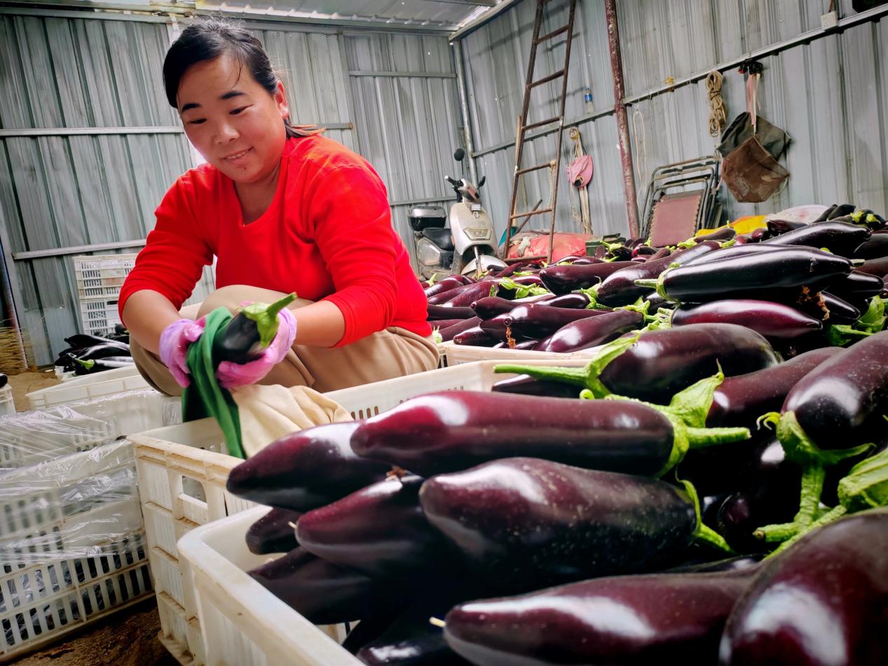 中国江苏网2月22日连云港讯 人勤春来早,大棚农事忙。2月21日大年初五,走进东海县双店镇宋庄村蔬菜种植基地,只见村民们在大棚里忙着采摘长茄,分拣、装车发往蔬菜专业批发市场。在这里,蓬勃发展的温室大棚种植已成为带动村民就业的重要平台,他们足不出村获得平稳的就业机会,实现增收顾家两不误。