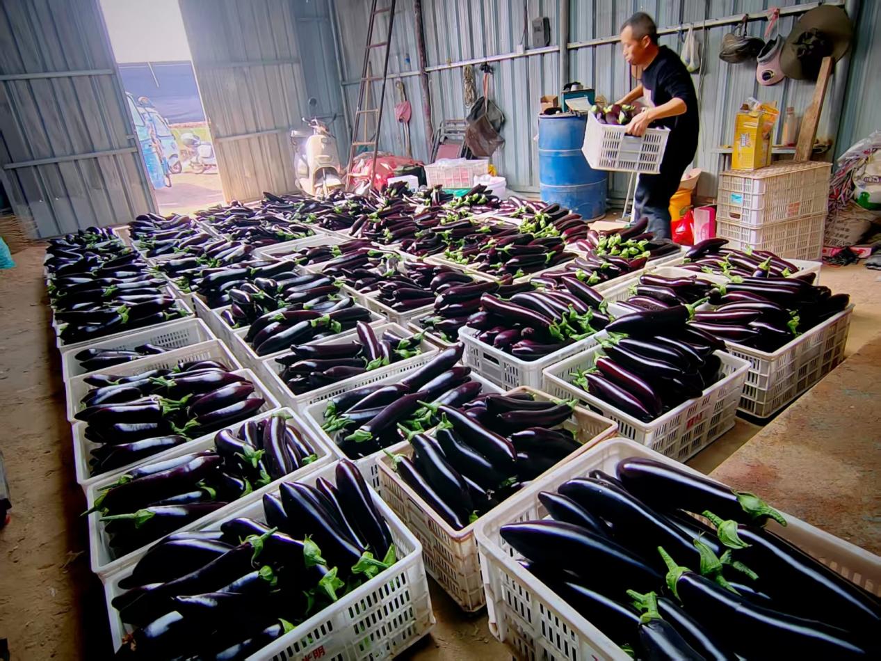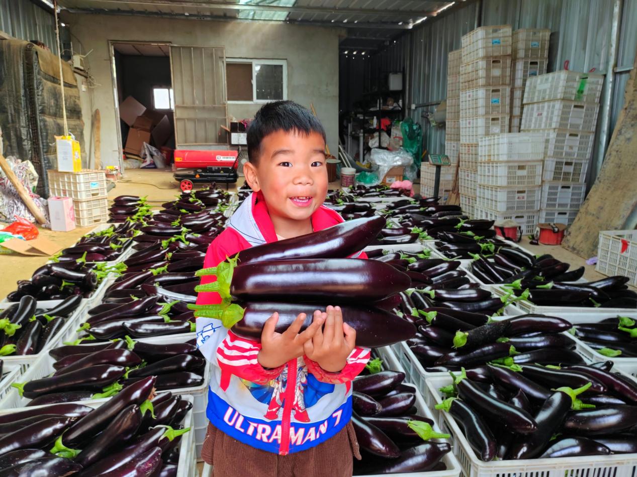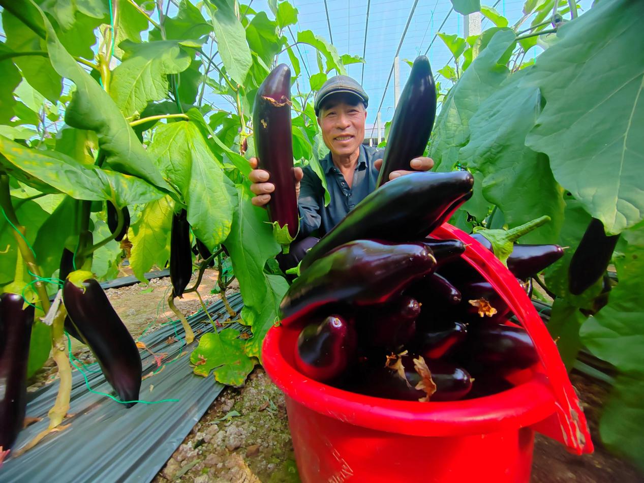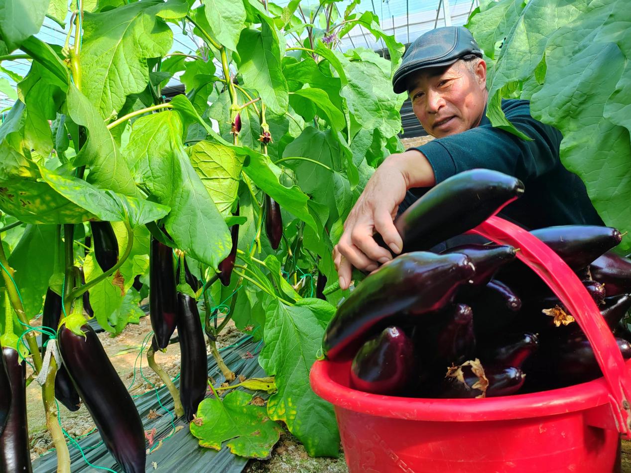 沉甸甸的果实垂挂在枝叶间,一颗颗、又粗又长的茄子挂满枝头,在阳光的照耀下泛着油亮的紫光……在新农人宋春雷的大棚里,眼前呈现出一派丰收的喜人景象:“我家种植这栋占地3亩地的‘765’长茄是一款早熟高产的好品种。其生长势旺盛,坐果能力强,果实呈圆柱形,果皮紫黑色,光泽度好,果肉疏松、细腻可口,营养丰富,非常适合做烧烤茄。从去年11月初开始小量采摘,到现在进入盛果期,每五天循环采摘一茬,每次采摘3000斤左右,毛收入6000元左右。照这样一茬茬采收,源源不断进账,估计我这季大棚收入六七万元没问题,一亩大棚顶上20亩粮田的收成真不是坑谈,可比以前在外漂泊辛苦强多了。”宋春雷带着家人忙而有序采摘,抑制不住内心的喜悦。