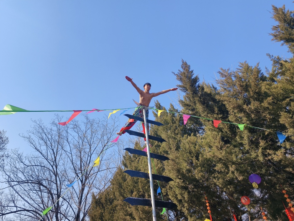 活动期间,好戏轮番上演,精彩目不暇接。来自开封的演艺团队以精湛技艺,将传统非遗的灵动与惊险展现得淋漓尽致。70人专业团队倾情献艺,以大伊山山体为天然舞台,通过高空威亚、飞轮杂技、环球飞车等演绎形式献上核心节目《大伊山・天地回响》,让游客在山水之间沉浸式感受文化魅力,解锁新春视听新体验。此外,上刀山、独竹漂、水上飞人等20余项特色小型演艺项目在山林水岸间循环上演。每日开展的仙侠主题巡游,身着特色服饰的巡游队伍穿行于山水间,与游客挥手互动、送福纳祥,将马年新春的喜庆氛围推向高潮。