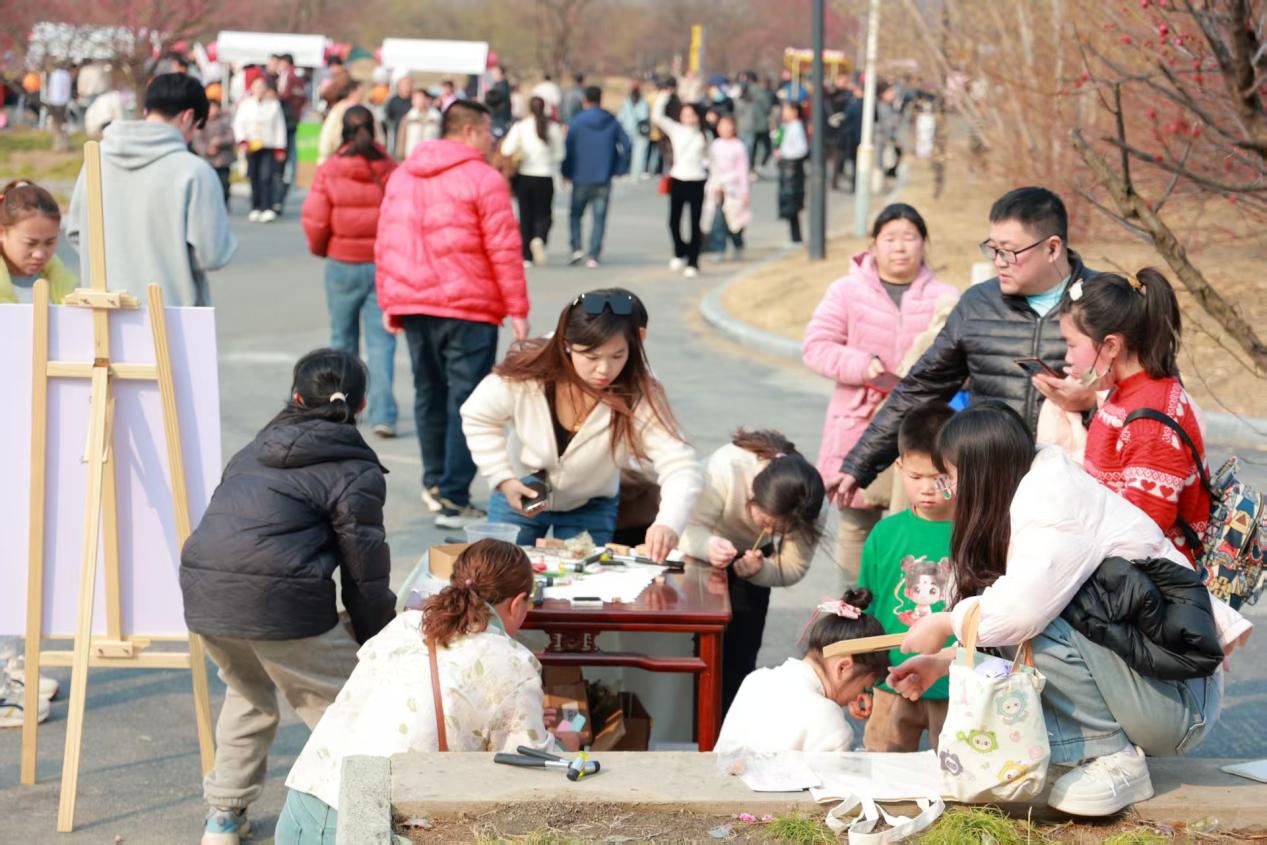 “新春主题市集”引入 35 家商户,划分年味美食区、非遗文创区、游艺互动区三大区域,汇集板浦凉粉、灌云大糕等本土特色小吃,梅花糕、青梅酒等梅主题美食,以及麦秆画、蓝印花布包等非遗手作和梅主题文创、三景区联名文创产品,同时设置套圈、钓金鱼等传统游艺项目,实现“观赏+游玩+消费”的完整闭环。