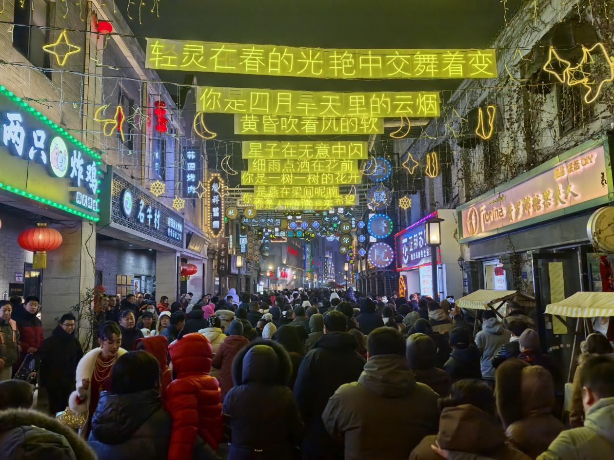 盐河巷、民主路老街、陇海步行街三大商业街区,以鱼灯为核心元素打造特色节庆氛围,各有亮点、错位开展。盐河巷18:00起率先启动“马上团圆”元宵派送活动,19:30-20:30 同步开展鱼灯巡游和“西游上元奇遇记”国潮夜演,以孙悟空带师徒下凡为故事主线,实现实景演绎与游客互动的深度融合。