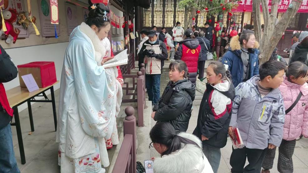 花灯制作区内,5组亲子家庭在指导老师带领下协作扎制花灯。从骨架搭建到裱糊装饰,孩子们在动手实践中感受非遗技艺的魅力。一盏盏造型各异的生肖花灯,承载着亲子协作的温馨记忆。“镜花仙子”情景展演吸引了众多目光,四位身着华服的表演者化身兰花、芙蓉、牡丹精灵,以优雅舞姿再现《镜花缘》经典场景。她们还与观众即兴对诗、互动投壶,现场掌声与快门声不断。