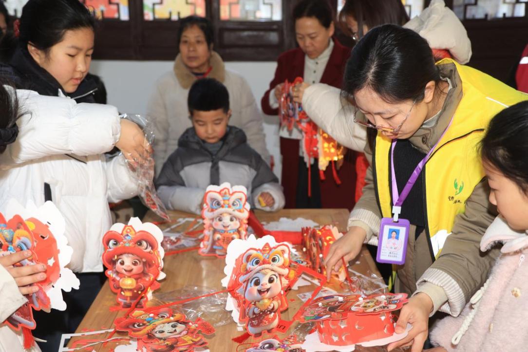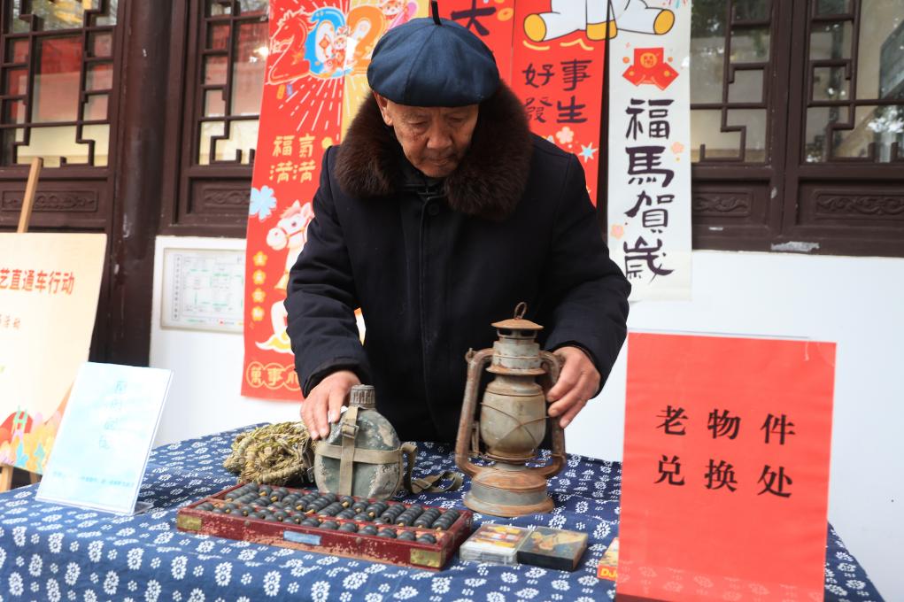 旧物置换区摆放着老式缝纫机、泛黄农具等老物件,唤醒居民的集体记忆。参与者以旧物换得热汤圆,在品尝传统美食的同时,分享古镇变迁故事。志愿者还将汤圆送到孤寡老人和环卫工人手中,传递社区温情。活动现场还设置了普法宣传和剪纸体验区。汉服讲解员开展“巾帼普法”宣传,志愿者指导孩子们剪制传统纹样,在寓教于乐中传承非遗。