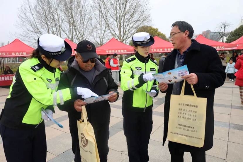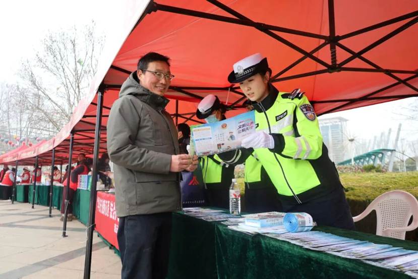 “闯红灯的危害有哪些?”“一盔一带如何正确佩戴?”面对民警的提问,市民踊跃回答,在欢声笑语中记牢了交通安全知识。此外,民辅警们还主动穿梭在人群中,向过往群众发放宣传资料,面对面讲解春季出行注意事项,重点提醒大家拒绝酒醉驾、疲劳驾驶。