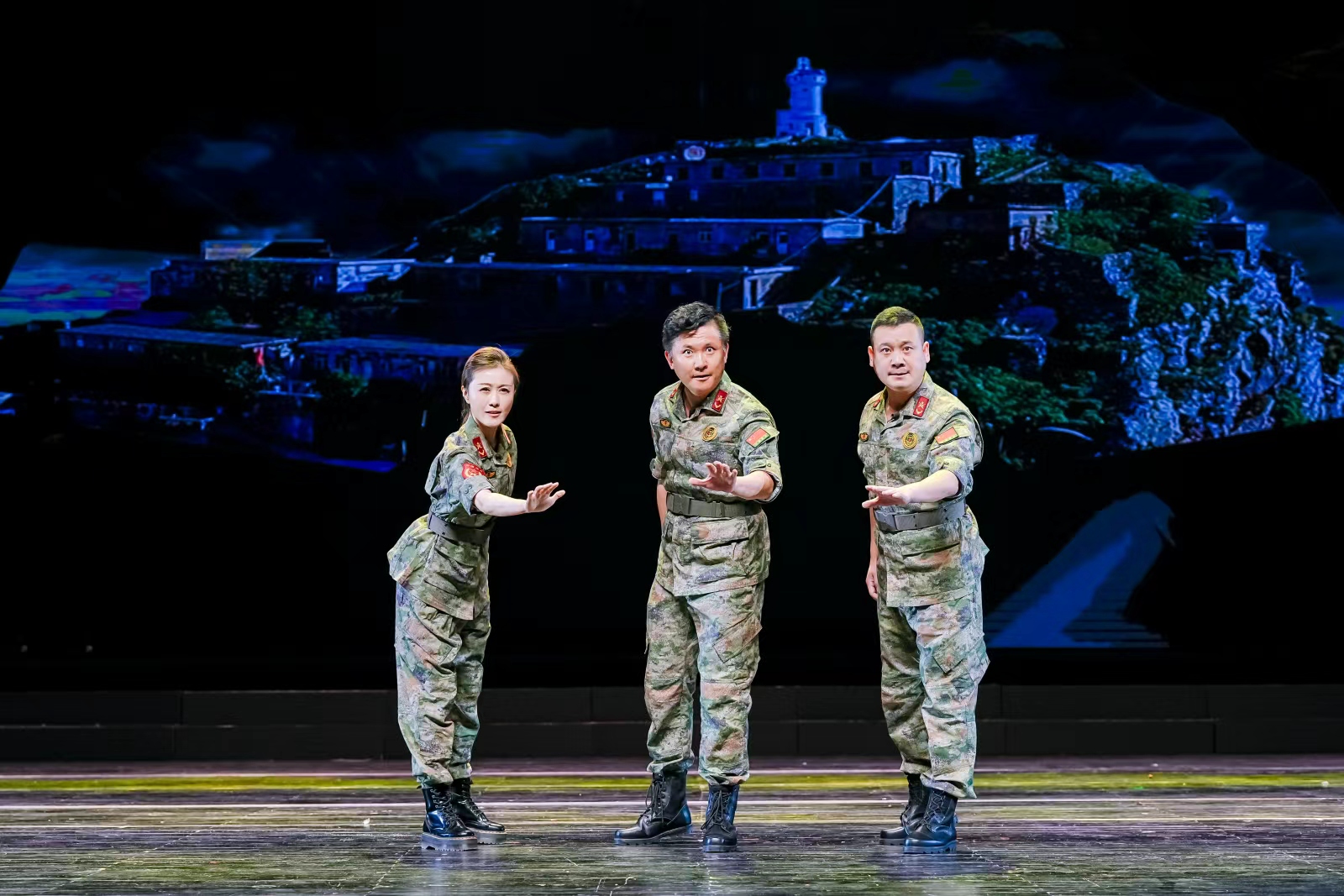 李贵华、胡枫两位编剧有着强烈的文化自觉,难能可贵的艺术创新精神,坚持以“小切口”,呈现大时代的现实主义创作导向,在发挥现实主义题材在情感共鸣与价值表达优势的基础上,注重在艺术形式创新上求突破,在舞台的感染力和表现力上动脑筋,在舞台的层次感、节奏的精准度上下功夫,以人物推动剧情,以剧情张力展演人物形象,把风雨中的开山岛真实存在过的人物立体化、生活化、形象化、艺术化,从而让英雄不再寂寞,让英雄主义催生奋进的力量,让英雄成长于时代的沃土之中。
