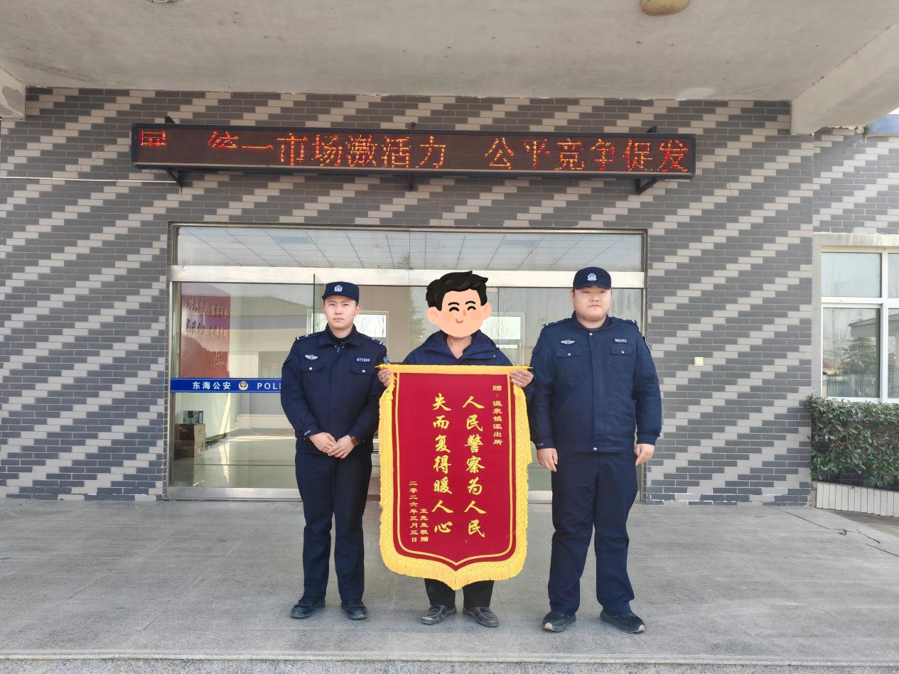 中国江苏网3月13日连云港讯 3月9日,东海县公安局温泉派出所的大院里上演了有趣又温馨的一幕:两位素不相识的王先生,不约而同地手捧锦旗走进派出所,一前一后将锦旗送到民警手中。一个感谢“为民解忧,情系百姓”,一个点赞“人民警察为人民 失而复得暖人心”。两位王先生,两面红锦旗,同一天送给同一个派出所,这份巧合背后,是温泉派出所民警辅警用心用情服务群众的真实写照。