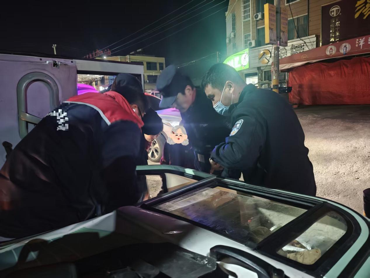 警情就是命令,接到报警后,平明派出所值班民警迅速带队赶赴现场。到达现场后,民警发现一辆电动三轮车侧翻在路边,车门因撞击已变形。透过车窗,民警隐约看到车内有两名老人被卡在座位与车厢之间,无法动弹。由于车辆侧翻,车里老人的身体受到挤压,现场情况十分紧急。