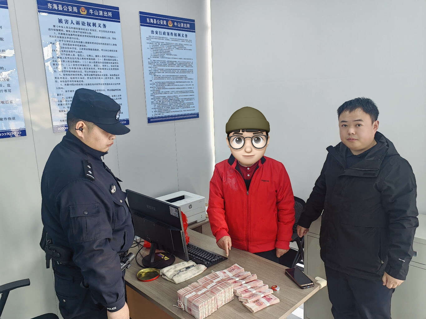 得知自己的血汗钱被东海警方成功拦截,周先生激动不已,特地从上海赶到东海。在牛山派出所,民警核实身份后,将27万元涉诈资金如数归还到周先生手中,并再次耐心开展反诈宣传,叮嘱其今后务必提高警惕,切勿轻信此类“客服”话术。为了表示感谢,周先生特地制作了一面印有“破案神速雷霆出击 为人民办实事的好警察”的锦旗送到民警手中。(袁青青)