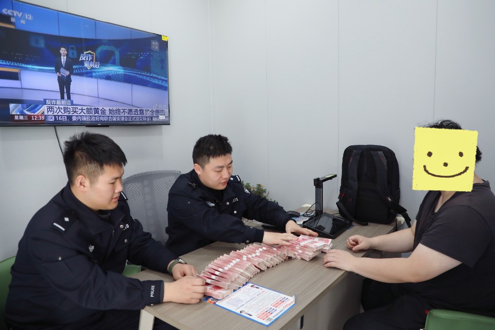 3月16日下午,当黄某来到银行取出27万元现金时,早已蹲守布控的民警迅速出击,将黄某及其携带的现金安全带回派出所进行核查。