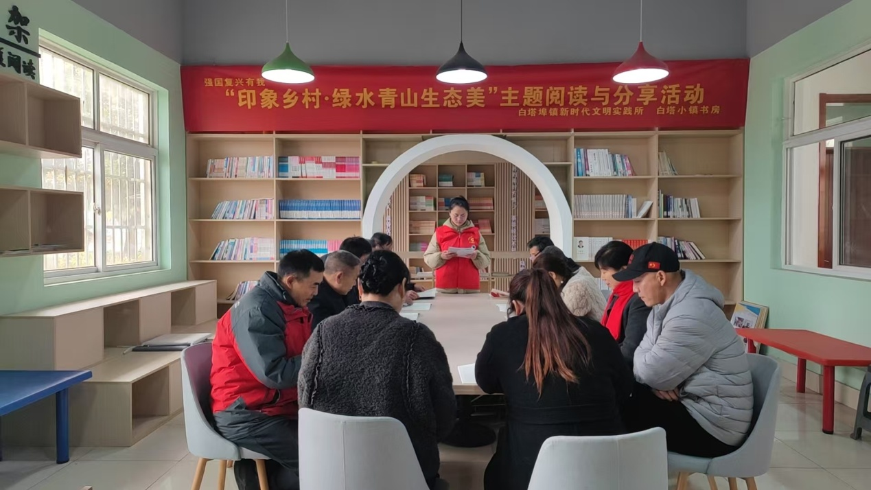 “‘平芜尽处是春山’出自宋代文学家欧阳修的《踏莎行·候馆梅残》一词,该词描绘了一幅动人的初春景色,呈现了候馆梅残、溪桥柳细、草薰风暖、远行人跃马扬鞭的生动场景……”在装饰一新的白塔小镇书房内,这几日,由镇文化志愿者和阅读推广人共同举办的“印象乡村·绿水青山生态美”“读经典·春意话乡村”“悦性情·春光里的振兴景”等多场主题阅读与分享活动吸引着十里八村的群众踊跃参与,在阅读诗词、品味经典中感受春天的气息,激发昂扬的斗志。
