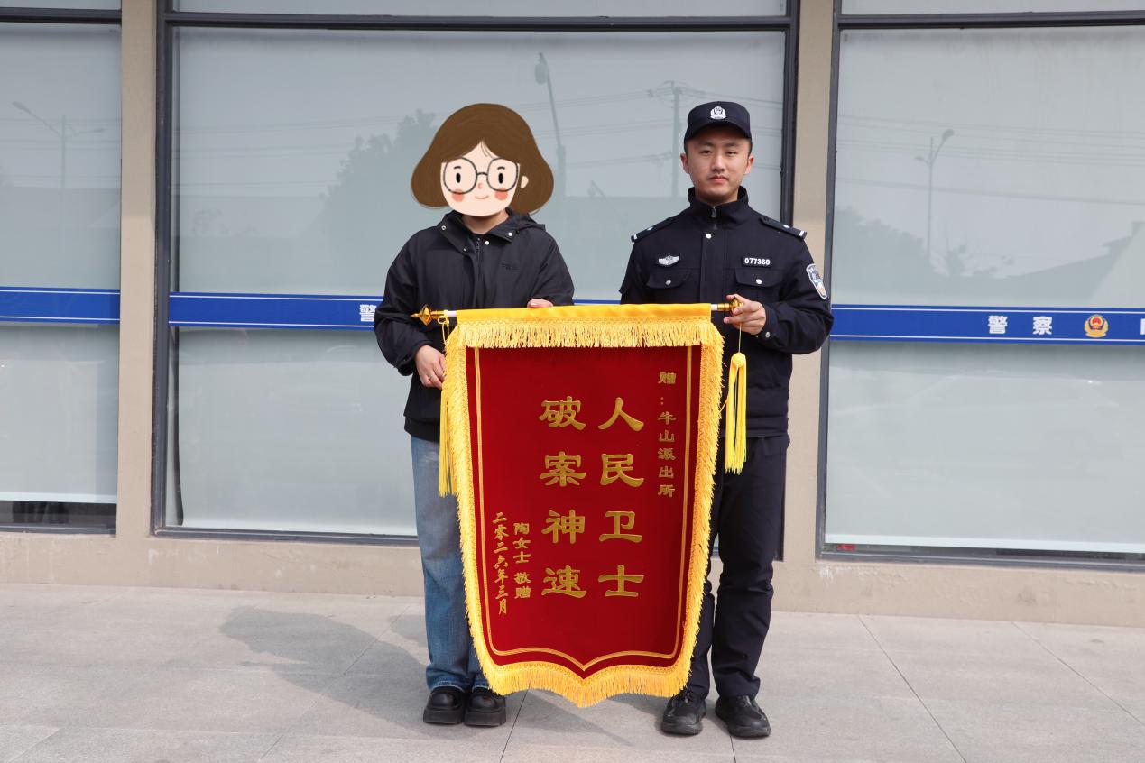 中国江苏网3月24日连云港讯 “真的太感谢你们了,没想到这么快就帮我把东西找回来了!”3月20日上午,家住东海县牛山街道的陶女士满怀感激地将一面印有“人民卫士 破案神速”的鲜红锦旗送到牛山派出所,对民警快速破案、为其追回损失表示诚挚的谢意。