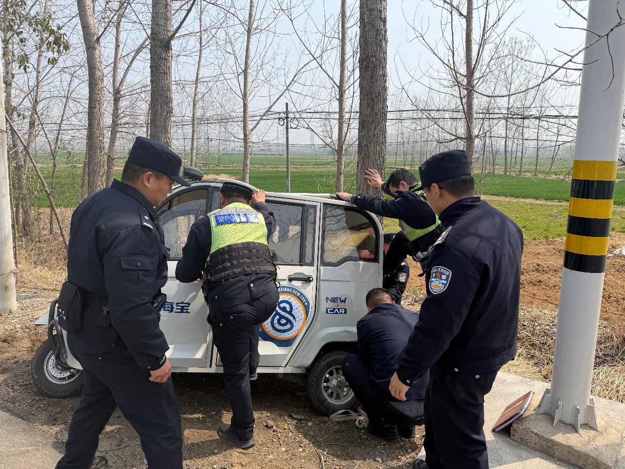 3月22日中午12时许,东海县公安局交管大队青湖中队民辅警在辖区开展日常巡逻时,在245省道青湖镇某路段发现一辆电动三轮车侧翻在路边,一名老人神色慌张地站在一旁,显然还未从惊险中缓过神来。