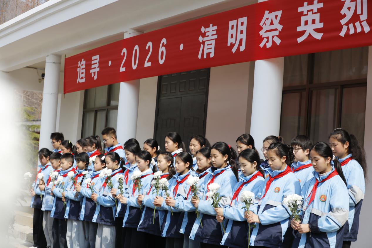 默哀毕,少先队员代表手捧花圈,缓步走向纪念碑,郑重地将花圈敬献于碑前,全体师生向革命先烈鞠躬致意,用最朴素的方式,表达最崇高的敬意。鲜花寄哀思,鞠躬颂忠魂,每一份敬意都饱含着对先烈的追思与感恩。