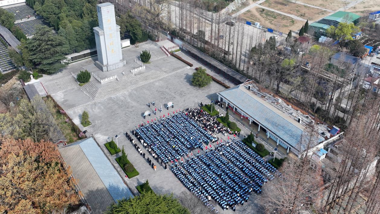 师生们怀着崇敬与肃穆的心情,列队抵达烈士陵园。苍松翠柏掩映间,英雄纪念碑巍峨矗立,诉说着革命先烈的无畏与坚守。在纪念碑前,全体人员肃立垂首,为国捐躯的革命烈士默哀三分钟,深沉的哀思在空气中静静流淌,寄托着对先烈的无限缅怀。