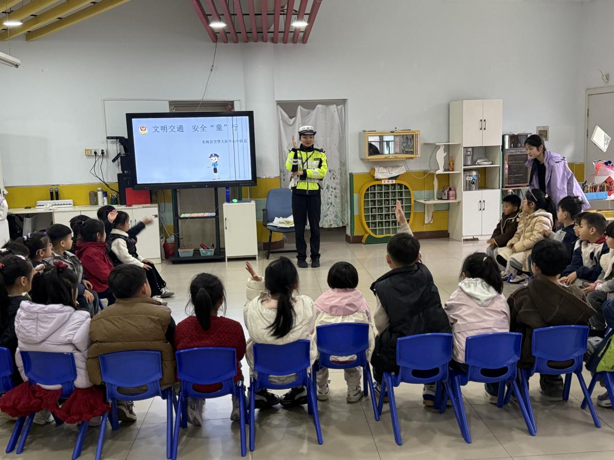 3月30日上午,交管大队牛山中队民警走进辖区幼儿园,为小朋友们带来了一堂生动有趣的交通安全课。针对幼儿年龄特点,民警通过播放卡通宣传片、教唱交通安全儿歌、互动问答等方式,用通俗易懂的语言讲解交通信号灯、斑马线、交通标志等基本常识,引导孩子们养成“红灯停、绿灯行”“过马路走斑马线”的良好习惯。