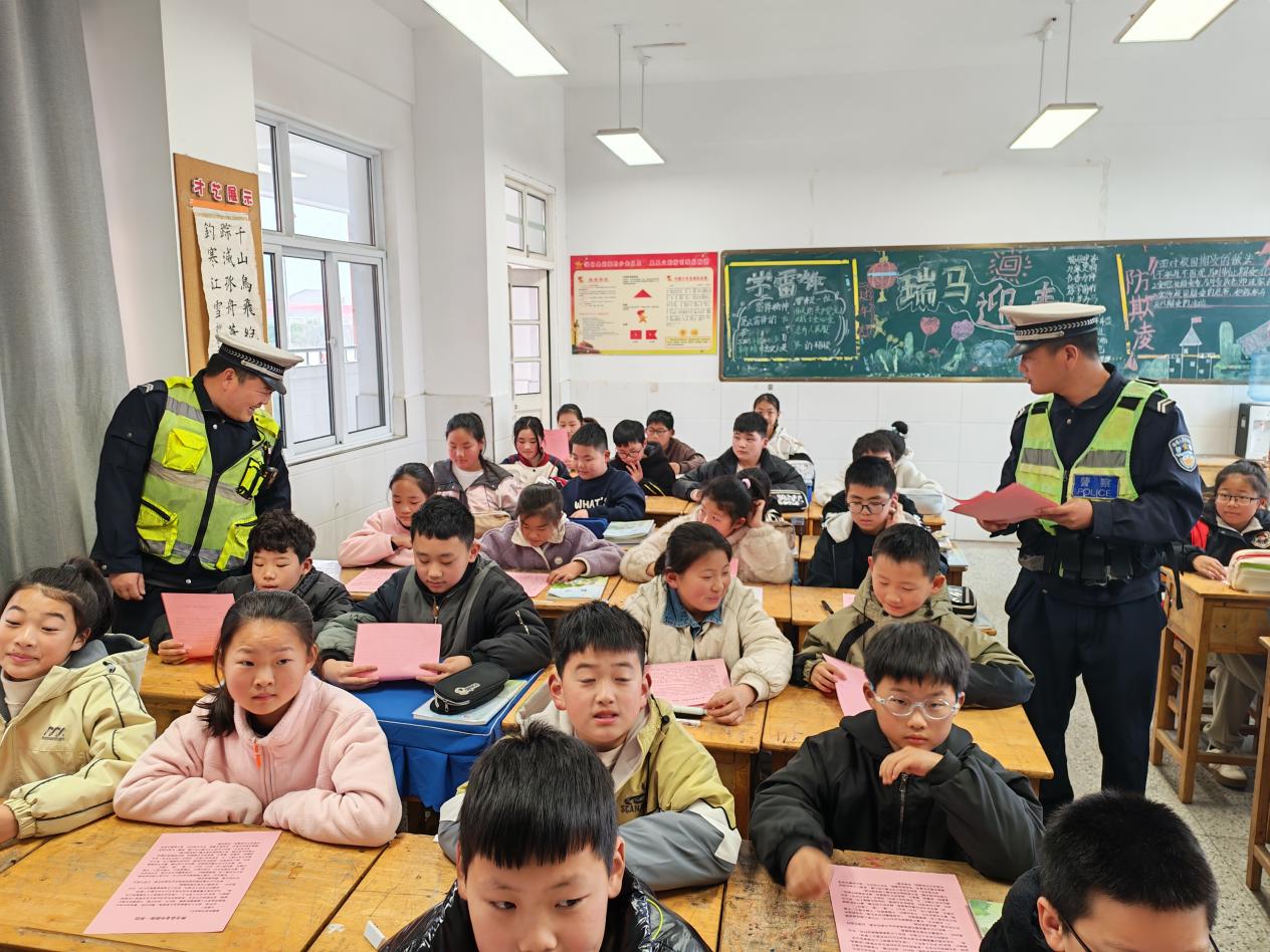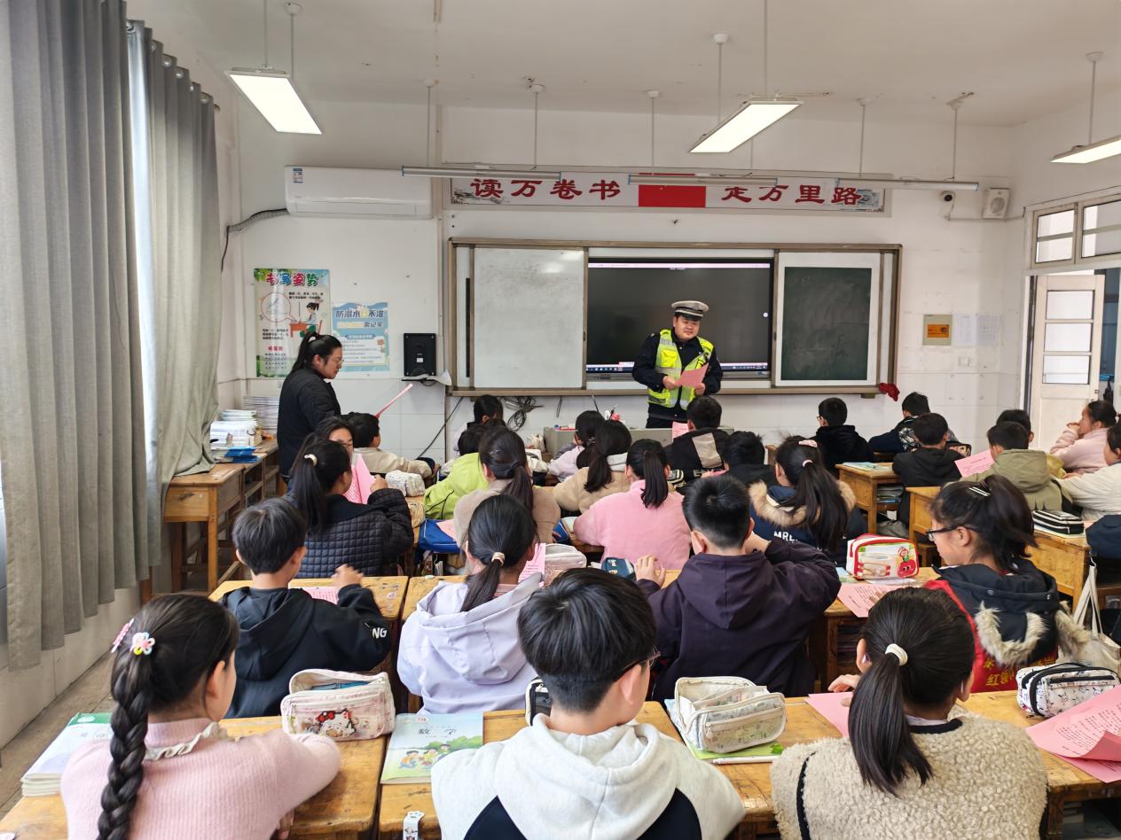 当天下午,双店中队民警辅警走进辖区小学,为学生们带来了一场别开生面的交通安全讲座。民警结合小学生出行特点,通过真实案例讲解、交通手势教学、模拟体验等环节,深入浅出地向学生们普及步行、骑车、乘车等方面的安全知识,提醒大家自觉遵守交通规则,摒弃交通陋习,做到“知危险、会避险”。