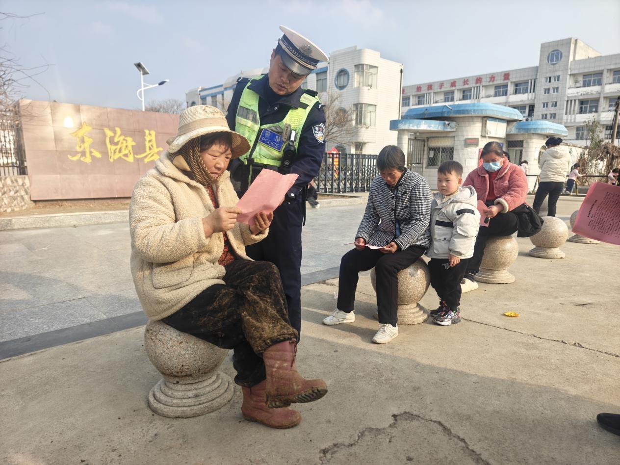 “放学后一定要等家长过来再走,不要乱跑。”放学时分,在东海县朱自清小学门口,牛山派出所民警庞迪一边护送学生有序离校,一边耐心叮嘱道。
