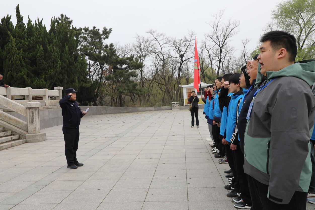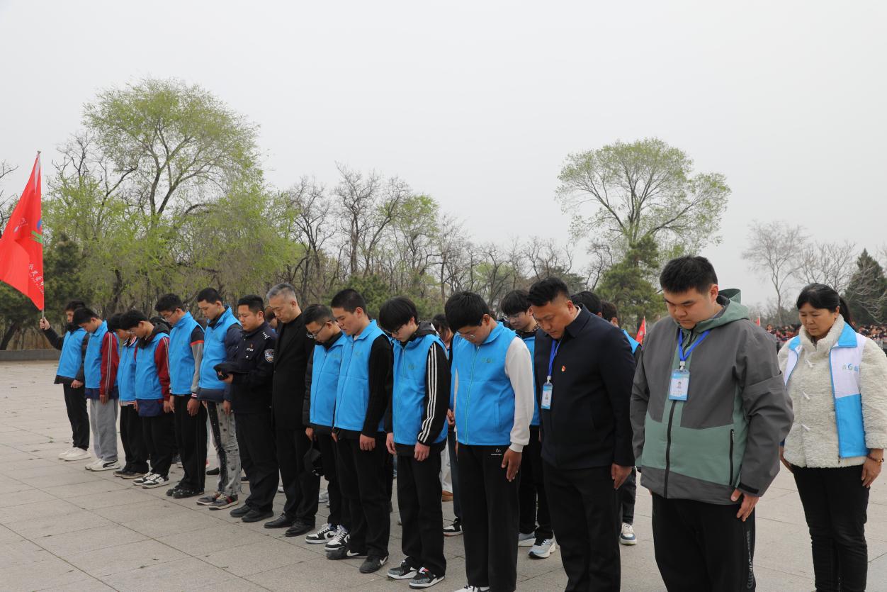 当天上午,安峰山烈士陵园内庄严肃穆,松柏凝翠。伴随着低沉悠扬的旋律,志愿者代表抬着花篮,缓步走向烈士纪念碑。全体人员肃立,向革命烈士行注目礼,致敬英雄不朽。随后,现场一片寂静,全体志愿者向长眠于此的革命先烈默哀,表达无尽的哀思与敬仰。大家齐声高唱中华人民共和国国歌,在歌声中重温那段烽火连天的峥嵘岁月,传承那份不朽的红色精神。