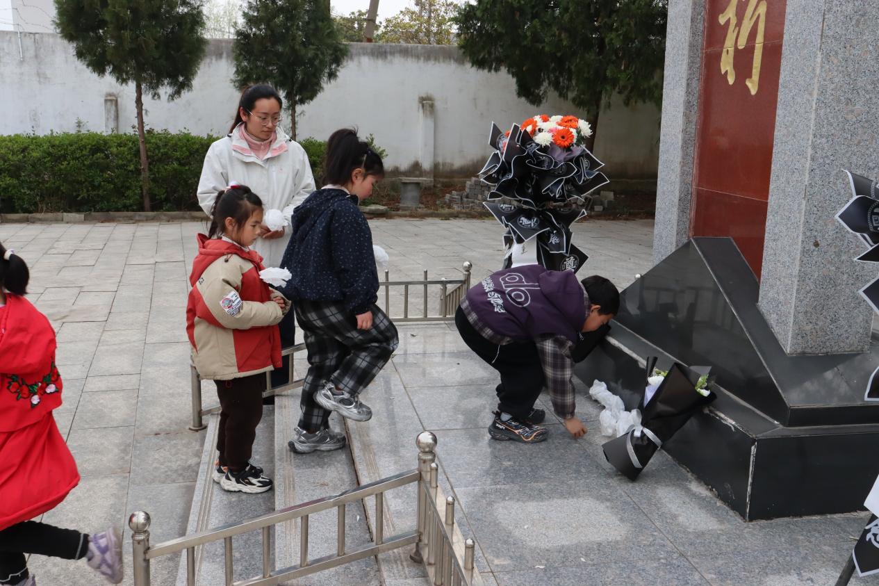 随后,“爱心妈妈”带着孩子们前往烈士陵园,开启红色缅怀之旅。在庄严肃穆的烈士陵园中,孩子们手捧亲手制作的纸花,怀着崇敬的心情向英烈敬献花束,用最朴素的方式表达对革命先烈的哀思与敬意。敬献花束后,大家一同走进烈士陈列展馆,在一幅幅珍贵图片、一件件历史展品前,“爱心妈妈”为孩子们讲述革命先烈的英勇事迹,孩子们认真聆听、驻足凝望,深刻体会到如今的幸福生活来之不易,在心中种下了崇尚英烈、缅怀英烈、学习英烈的种子。