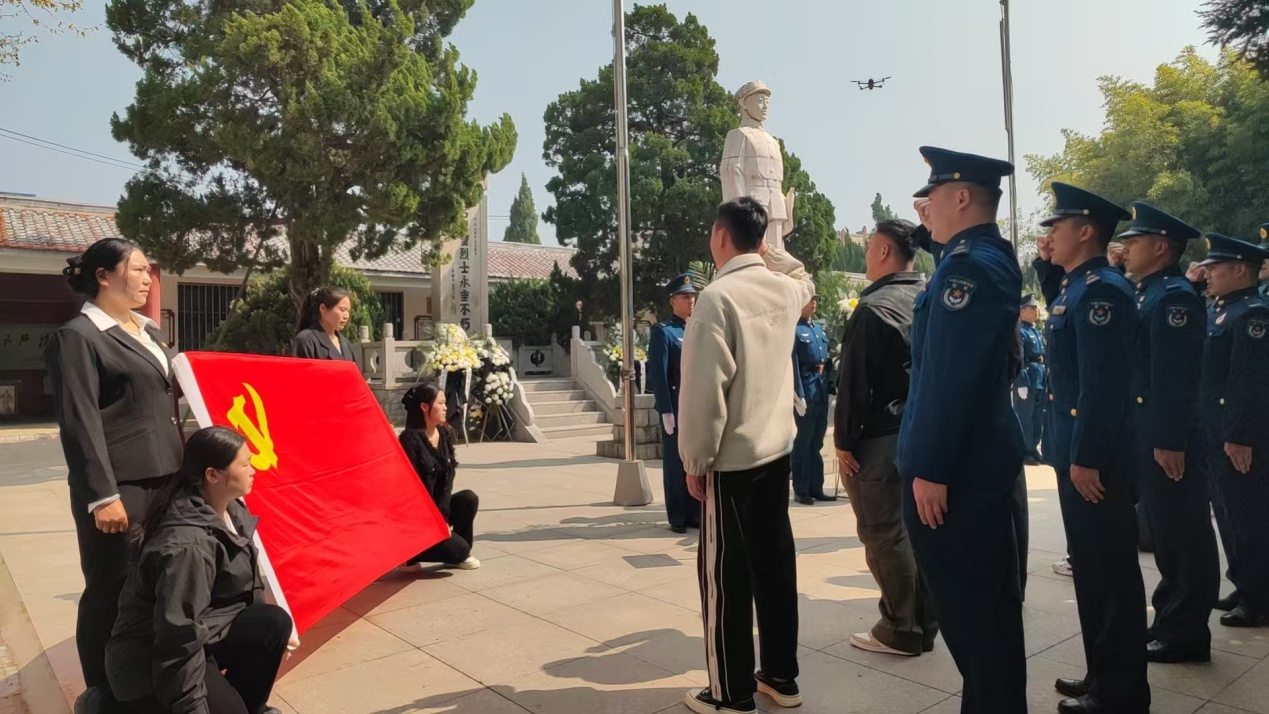 在烈士陵园的西北一角,苍松翠柏间,一群人围拢在党旗下。“我志愿加入中国共产党,拥护党的纲领,遵守党的章程,履行党员义务,执行党的决定,严守党的纪律……”面对鲜红的党旗,来自驻地部队和镇机关的部分党员代表重温了入党誓词,嘹亮的声音响彻云霄。