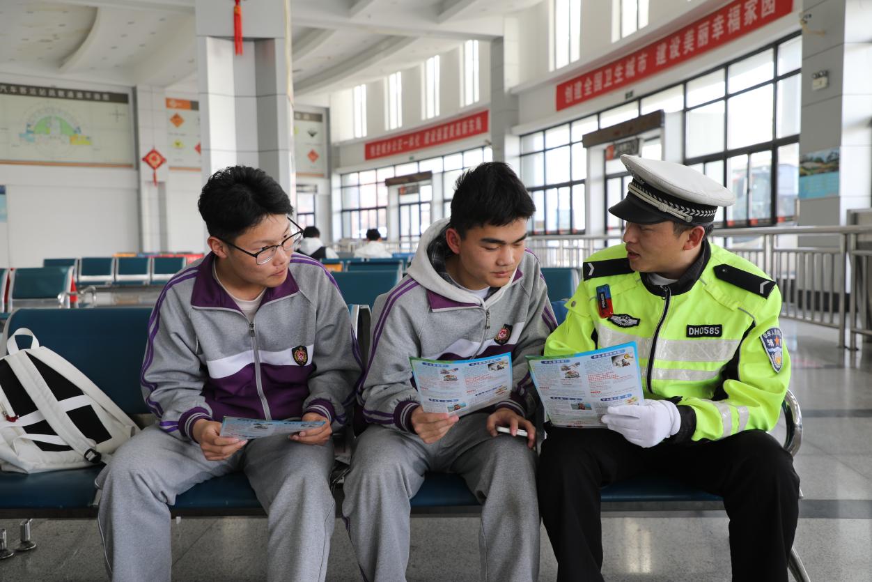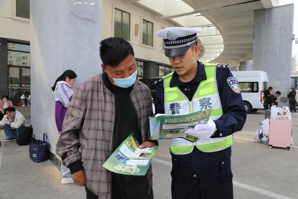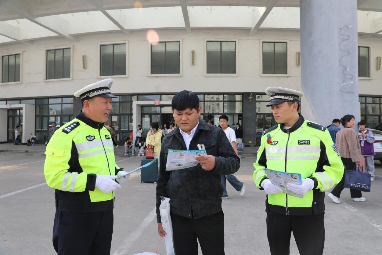中国江苏网4月5日讯 清明假期拉开帷幕,群众返乡祭扫、踏青出游需求集中释放,辖区交通流量显著上升。为从源头预防和减少道路交通事故,4月3日下午,东海县公安局交管大队牛山中队组织民警,走进辖区汽车站与高铁站,开展节前专项交通安全宣传活动,为广大旅客和驾驶人送上出行“平安锦囊”。