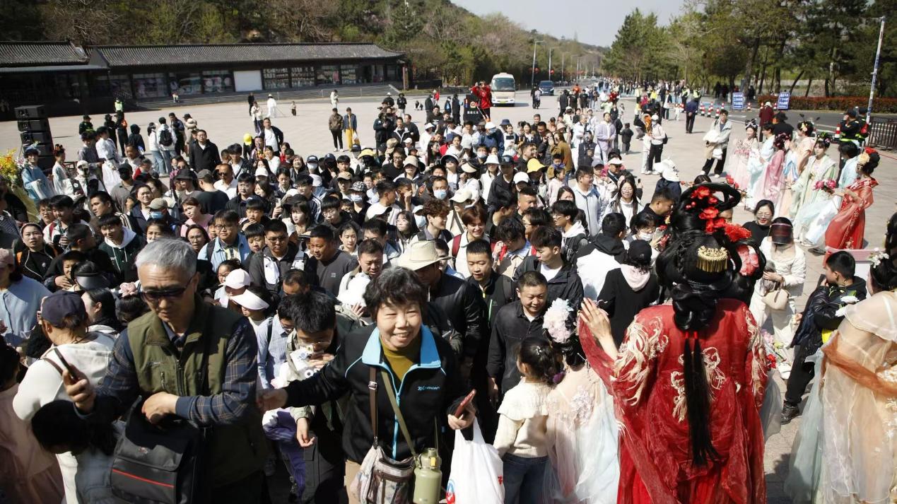 中国江苏网讯 清明假期,花果山景区人头攒动,热闹非凡。十二花神与簪花郎的互动巡游拉开帷幕——花神衣袂飘飘,簪花郎笑语盈盈,所到之处,游客纷纷举起手机记录精彩瞬间。景区内,精灵泡泡秀、齐天大圣魔法秀、花花小丑和腹语木偶等节目轮番登场,引来孩子们阵阵欢呼。