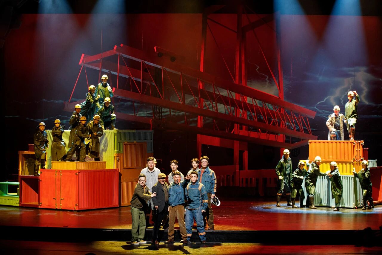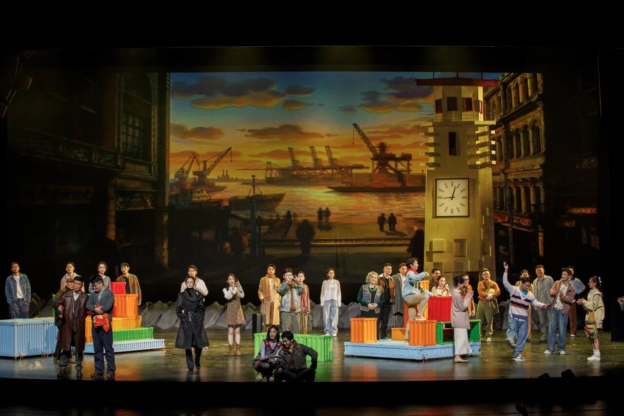 灯光与音乐的搭配,更是为剧情推进与情感表达锦上添花。灯光设计以冷暖色调的对比烘托情绪,当讲述家族伤痛的情节时,冷调的灯光营造出压抑的氛围;当迎来和解与团圆时,暖调的灯光让舞台充满温情,而港口作业场景的灯光则明亮大气,彰显出新时代港城的蓬勃生机。音乐创作则融入了连云港本土的海州五大宫调元素,搭配偏民谣风格的主题歌,从怀念、乡愁到温暖、希望,旋律与剧情同频共振,为跨国情谊与丝路情怀增添了独特的地域韵味。值得一提的是,该剧在艺术表达上突破了传统话剧的边界,邀请舞蹈编导融入情景剧表演与当代舞蹈元素,将肢体表达与语言叙事深度融合,既没有破坏话剧的本体特质,又让舞台表达更具层次与张力。