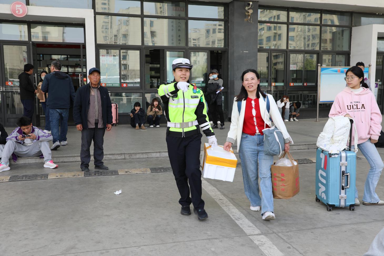 为保障旅客平安顺畅出行,东海县公安局交管大队联合巡特警、派出所等警种,在车站周边及候车区域强化安全巡逻防范,提高见警率、管事率。执勤警力在维护秩序的同时,主动为有需要的旅客提供帮助。看到携带大件行李、怀抱婴幼儿或行动不便的乘客,民警辅警纷纷主动上前,帮忙搬运行李、引导乘车,并耐心解答问询。一句句暖心提醒、一次次伸手相助,让匆忙的旅途多了几分温情,也赢得了过往旅客的纷纷点赞。