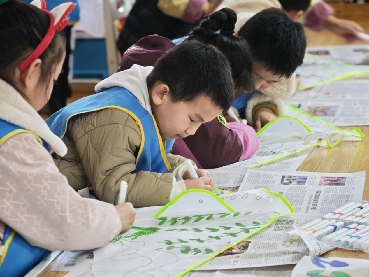 在老师和社区志愿者的悉心指导下,小朋友们拿起画笔,在素白的风筝上描绘心中愿景。有的绘上清雅的莲花,寓意“出淤泥而不染”;有的写下“廉”字,表达对正直品格的向往。每一笔勾勒都饱含童真,每一抹色彩都寄托着对美好品格的追求。扎骨架、糊纸面、系长线,孩子们在动手实践中体验着非遗技艺的独特魅力。