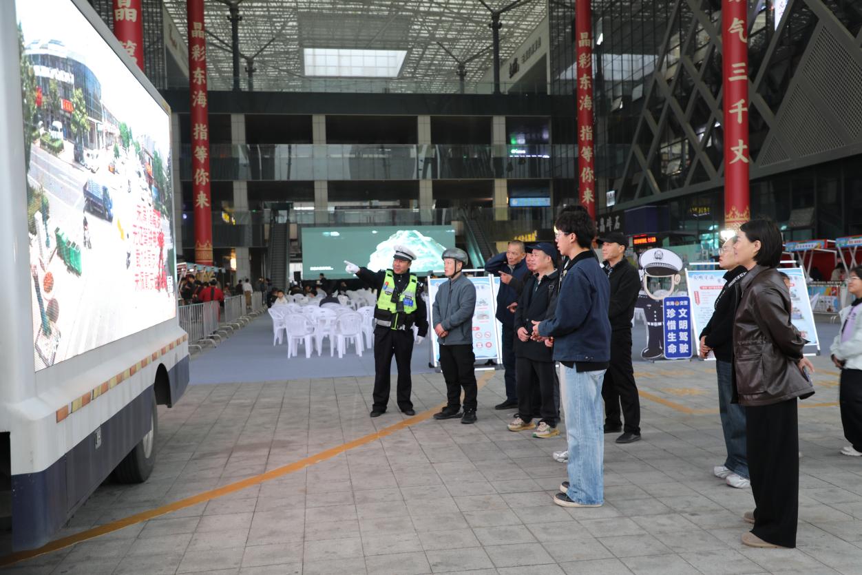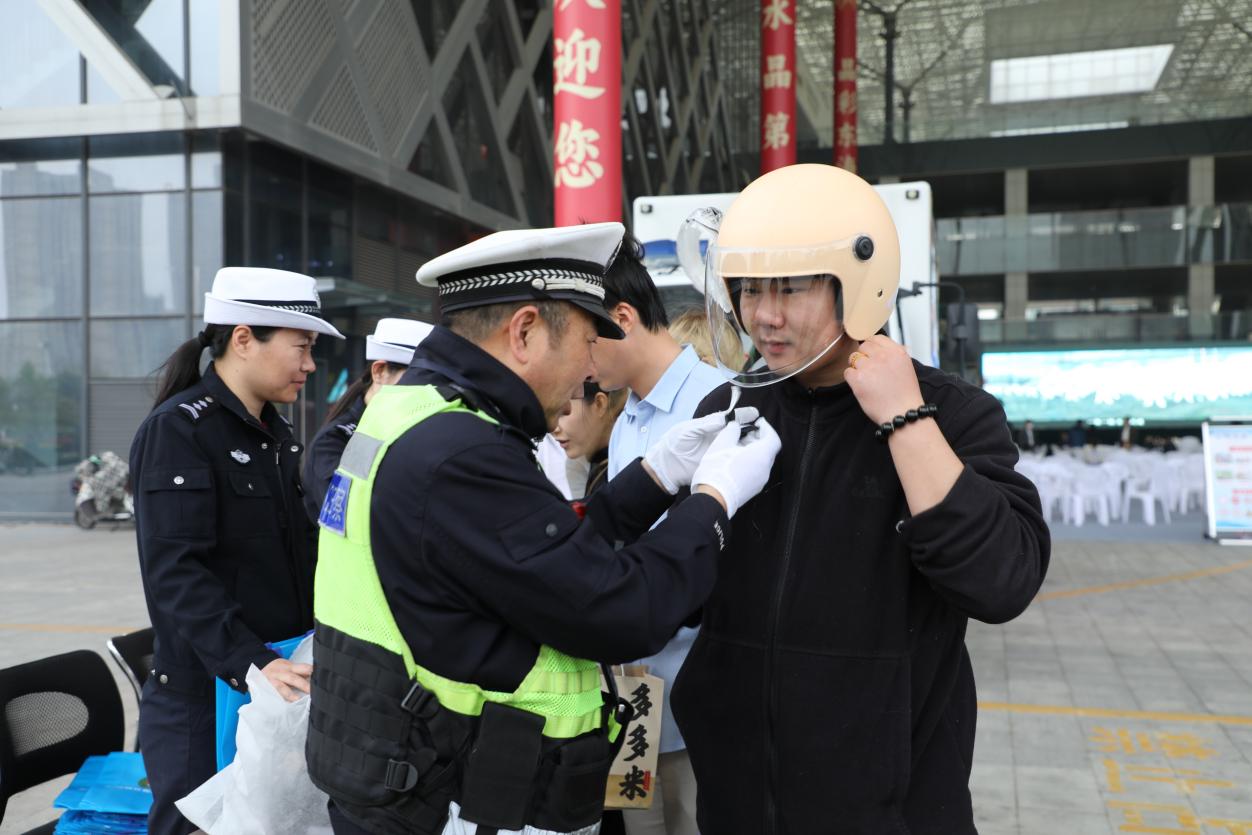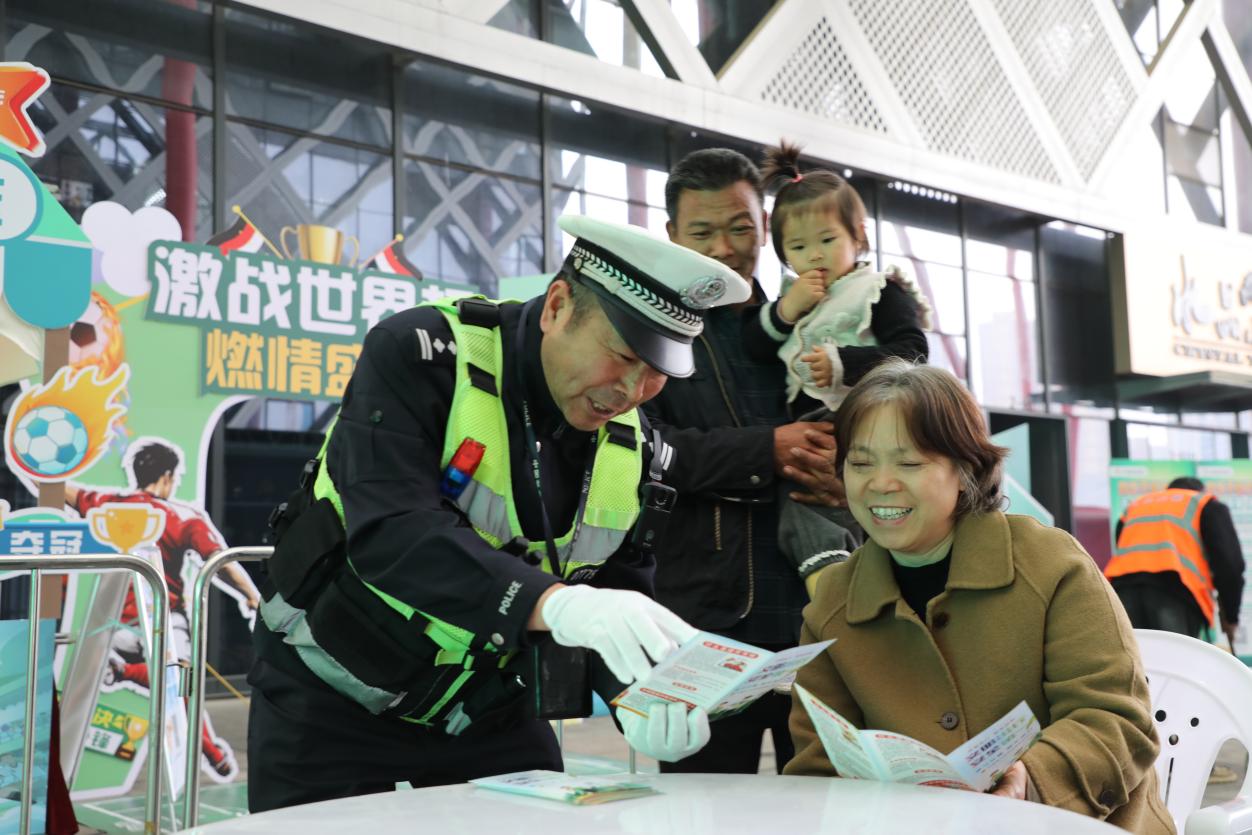 比赛开始前,交管大队牛山中队民警辅警提前到达水晶城观赛点,利用赛前人员集中的有利时机,精心组织了一场形式多样的交通安全宣传活动。现场,流动宣传车循环播放宣传视频,醒目的宣传展牌吸引众多市民驻足观看。民警辅警还通过有奖竞答的方式与现场群众积极互动,在一问一答中普及“一盔一带”等交通安全知识,并手把手向市民演示如何正确佩戴安全头盔。这种寓教于乐的方式有效提升了市民的安全出行意识,赢得了现场群众的广泛参与和好评。