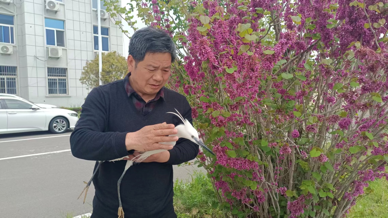 中国江苏网讯 4月13日上午11点多,东海县驼峰乡党委食堂厨师钮青在食堂外的草丛中,偶然发现一只受伤的白鹭。这只白鹭躲藏在一处草丛里,从外形上初步判断,可能是受伤了,钮青便电话联系该乡党委办公室工作人员。