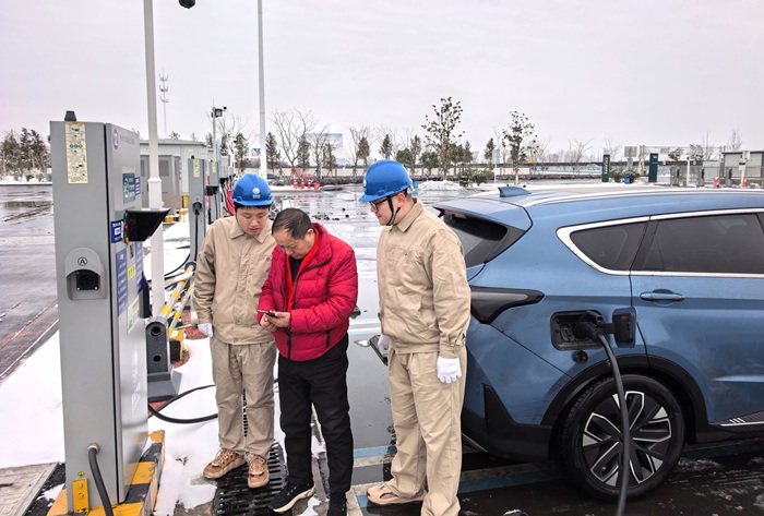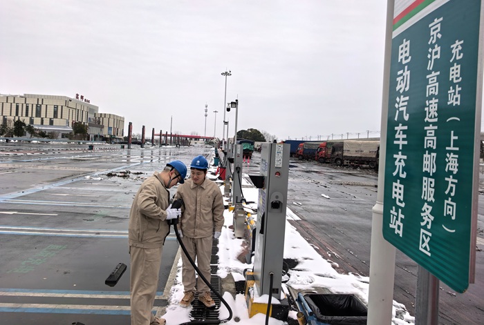贴近民生的优质服务在风雪中持续“在线”。1月20日,在G2京沪高速扬州高邮服务区,国网扬州供电公司充电服务运维人员顾春飞冒着风雪穿梭于充电桩之间,有序引导车辆、检查充电设备,全力保障现场充电秩序与设备安全。本轮雨雪天气期间,国网江苏电力累计派出800人次运维力量,同时依托全省高速服务区高密度充电网络与智慧车联网平台赋能,保障1336台高速充电桩稳定运行,设备完好率持续维持99%以上,确保群众绿色跨城出行能源补给畅通无阻。