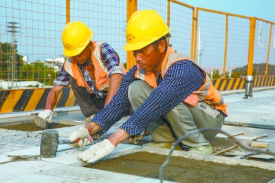 昨天,在江宁区文靖西路跨秦淮河桥项目现场,工人冒着高温,奋战在工作岗位上。