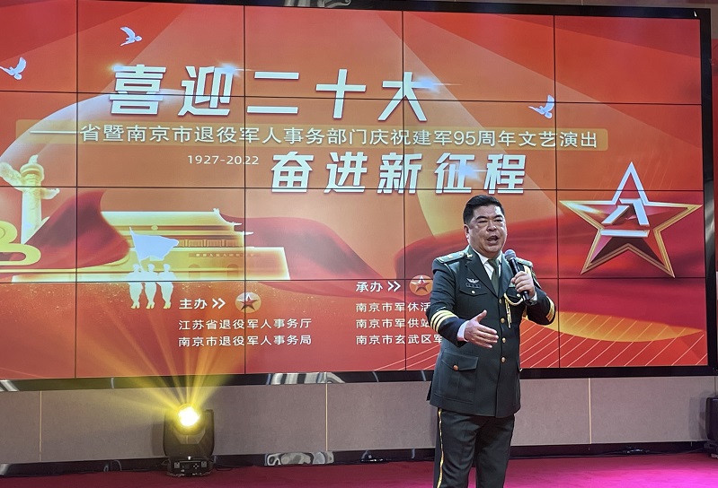 中国江苏网讯 7月29日上午,江苏省退役军人事务厅、南京市退役军人事务局联合举办“喜迎二十大 奋进新征程”庆祝建军95周年文艺演出,讴歌党领导人民军队从胜利走向胜利的光辉历程,激励大家以强烈的历史主动精神奋进新征程、建功新时代,以实际行动迎接党的二十大胜利召开。