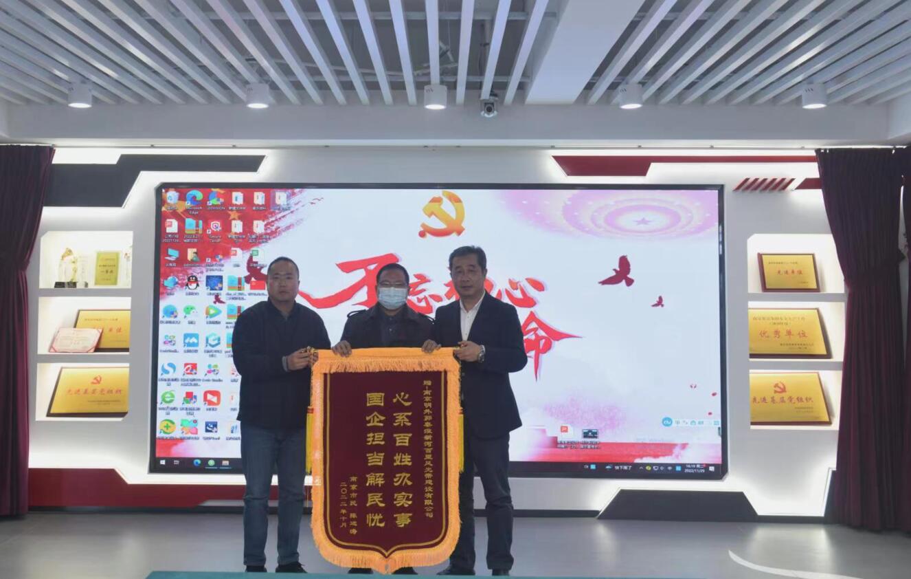 近日,南京市民陈先生来到南京旅游集团百里风光带公司,送上“心系百姓办实事,国企担当解民忧”字样的锦旗,感谢该公司为龟山公园片区环境提升做出的贡献。