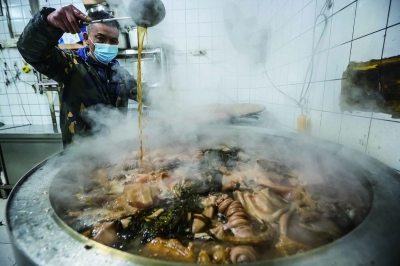 春节临近,传统美食生意也日趋火爆。昨日,在南京六合区朝天街一家猪头肉专卖店,订单大增,供不应求。该品牌猪头肉采取线上、线下销售,远销北京、天津、上海等地,深受消费者青睐。南京日报/紫金山新闻记者 董家训 摄