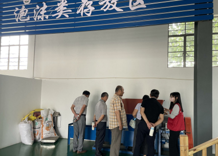 第二站参观冶山街道分拣站:在冶山街道分拣站,现场工作人员详细讲解可回收物的常见种类、回收价格、处置方式等,提高居民对可回收物回收利用的了解,提高可回收物回收率。