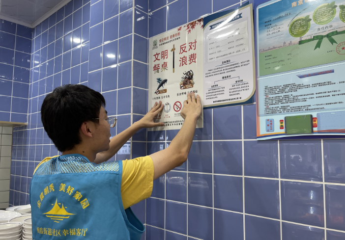 健全管理机制,源头制止浪费行为。南炼新村社区依据网格化管理模式,逐步完善餐饮店、食堂等餐饮单位巡查制度,引导餐饮行业自觉践行“文明餐桌”相关要求。如建议企业职工食堂在取餐环节设置监督员,引导就餐职工勤拿少取,大盘换小盘,避免口味不好浪费饭菜。同时向沿街商铺倡议,要多提醒消费者“吃多少点多少,吃不了就打包”,并鼓励餐饮店提供小份菜、半份菜等服务,努力让“反对浪费,崇尚节约”在全社区蔚然成风。(范嘉为)