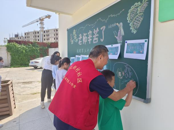 尊师重教是中华民族的传统美德,活动中,工作人员向在场的青少年和家长发放移风易俗倡议书,鼓励他们以文明的方式向老师表达感谢。“烷美”青年积极引导孩子们表达内心情感,“感谢老师的辛勤付出,老师辛苦了。”“我会好好学习,争取长大之后也成为了一名老师。”孩子们朴实的话语让在场的每一位动容,在老党员王学先的带领下,儿童们合力完成了教师节祝福板报绘制,用稚嫩的画笔描绘下对老师真挚的感情。