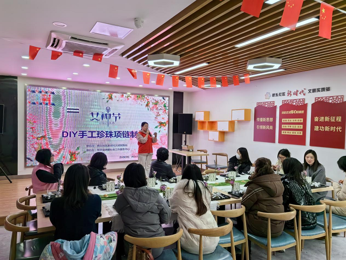 桥头社区新时代文明实践站开展DIY手工珍珠项链制作活动。