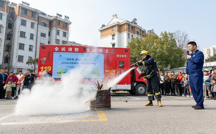 安全活动宣传区,通过消防家庭演练、有奖问答、文艺演出等寓教于乐的形式,生动有趣地向群众普及消防安全知识并发放小型灭火器。