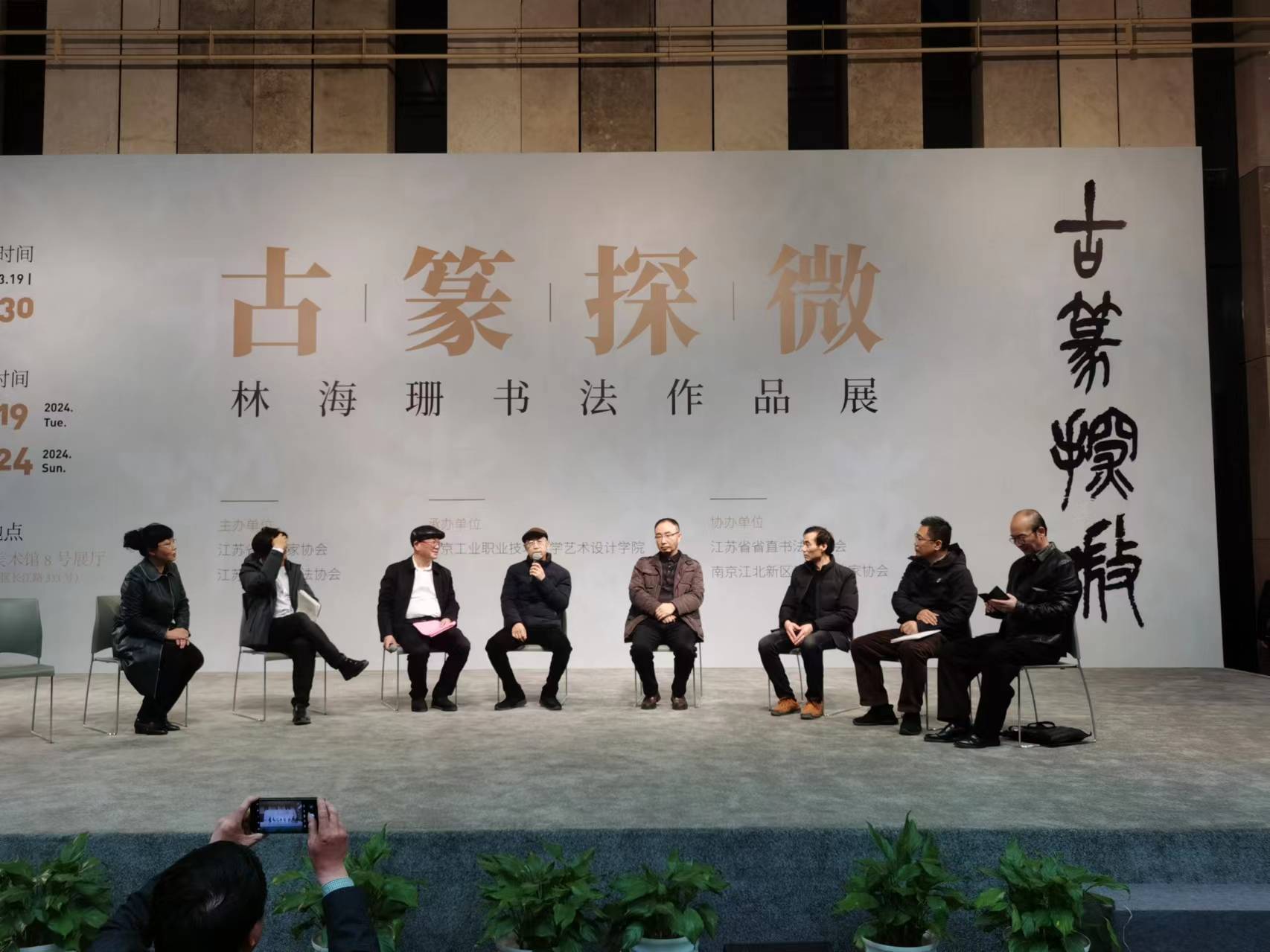 中国江苏网3月19日南京讯 (记者华诚)3月19日,“古篆探微”林海珊书法作品展在江苏省美术馆开幕,本次展览由江苏省书法家协会、江苏省教育书法协会联合主办,共展出林海珊近一两年来创作的60余幅作品,以篆书作品为主体,并展出隶书、行书的临创作品,其中几幅是近五年来入选国家级展览的复制作品。