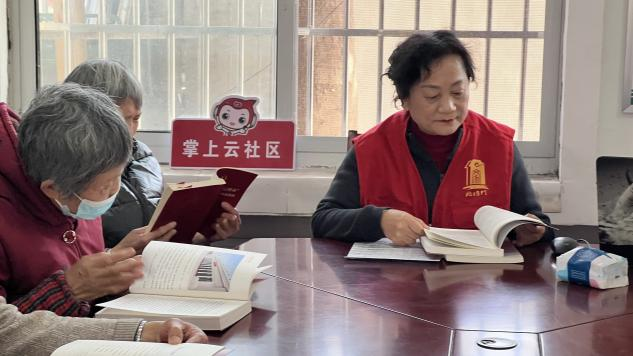 社区党委通过开展有温度、接地气的“冬训+阅读”活动,不断激发广大党员群众的阅读热情。3月20日,尧安新村社区党委组织辖区党员、居民开展全民阅读活动。活动中,安馨老党员工作室的陈爱荣同志推荐并分享了党员冬训学习用书《中国式现代化面对面》,围绕书中内容开展理论宣讲。此外,陈爱荣同志还鼓励大家积极参与“掌上云社区”微信群组织的线上阅读,随时随地阅读金句、分享金句,把党的理论“带”在身边,积极推动书香栖霞建设,为党员冬训学习赋能加油,推动党员冬训工作走心走实。