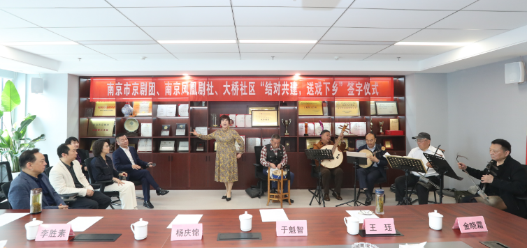 当天,国家京剧院于魁智教授、李胜素团长到会祝贺。参加签字仪式的还有:南京市文联一级调研员史进、剧协秘书长张海涛,南京市演艺集团、浦口区文联、南京市京剧团、南京凤凰剧社相关负责人和永宁大桥社区居民代表。