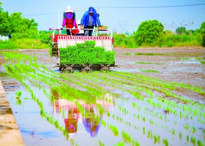 前天,在江宁区淳化街道现代农业示范园内,农技人员组织农民正在抢抓农时忙插秧。作为国家地理标志产品“土桥大米”的培育种植基地,该育秧中心主栽“宁香粳9号”“南粳46”等品种,可满足周边5000亩大田秧苗需求。 通讯员 乐洋 南京日报/紫金山新闻记者 冯芃 摄