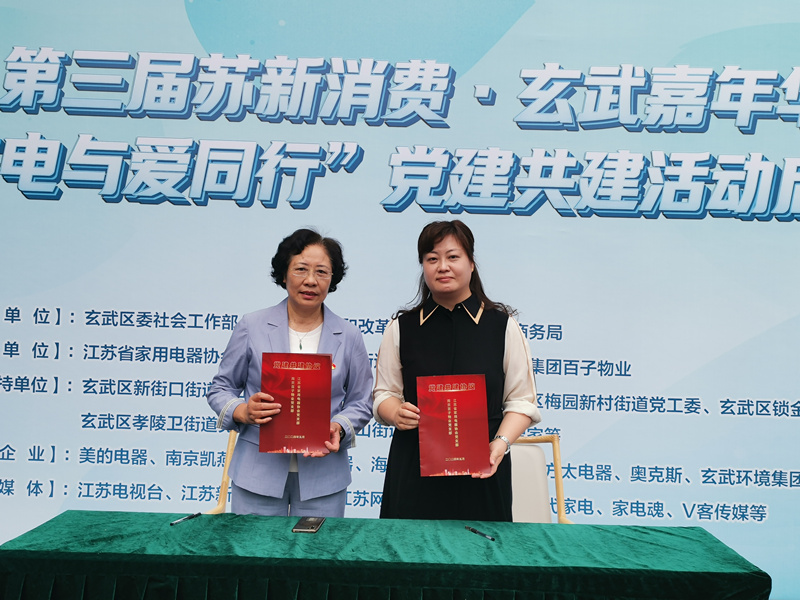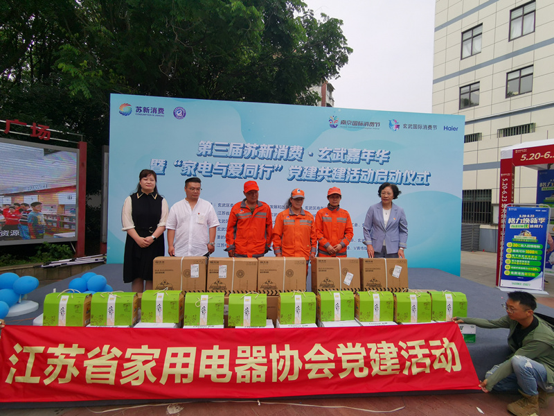 启动仪式上,江苏省家用电器协会党支部书记钱争鸣与百子物业党支部书记程雯共同签订党建共建协议,并给环卫工人送上夏季必备的电风扇和矿泉水。据介绍,嘉年华活动期间,“家电与爱同行”党建共建活动同步举行。玄武区委社会工作部党支部、江苏省家用电器协会党支部联合玄武区玄武湖街道党工委携“家电与爱同行”志愿者,前往小区慰问,给居民代表赠送电风扇和端午礼盒;各品牌企业根据前期物业统计的报名情况,开展为市民免费检测家电使用安全状况、免费进行家电清洗和保养的公益活动。